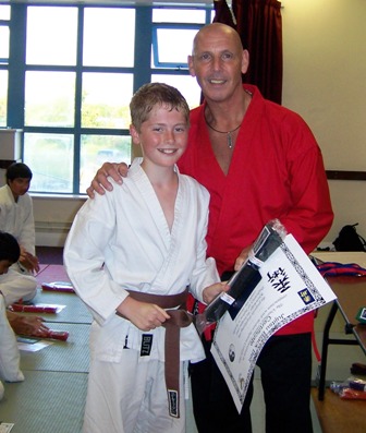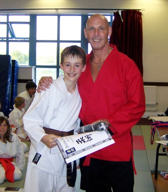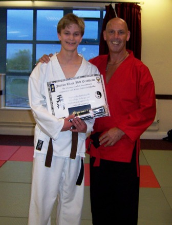 Danny Williams with Sensei Graham after receiving his Junior Black Belt